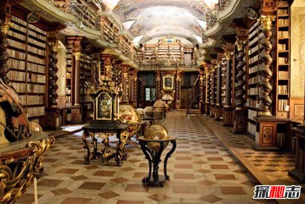 于捷克共和国布拉格的克莱门汀图书馆是一个大耶稣会大院的一部分,曾经是世界上第三大耶稣会学校。装裱在书架上的华丽的细丝和精致的柱子,带着强烈的历史感。