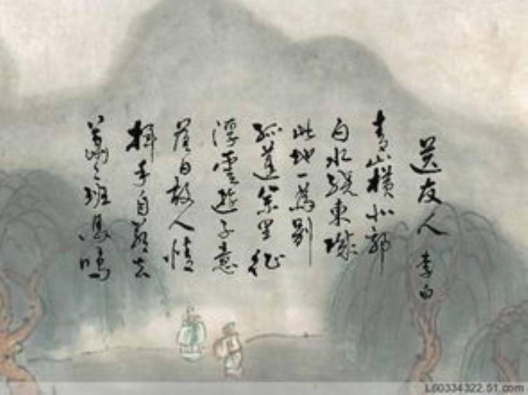 这是一首脍炙人口的送别诗,写得别致新颖,充满了诗情画意。诗中“青”翠的山岭,清澈洁“白”的流水,火红的“落日”,飘泊的“浮云”,相互映衬,色彩斑斓;“班马” 长“鸣”,形象鲜活生动,诗人与友人策马辞行,情意绵绵,感人肺腑。