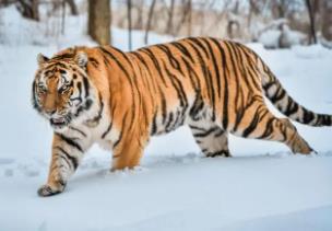 东北虎也被叫做是西伯利亚虎,在额头前面有几条竖纹,看起来和王字特别的相似,脑袋长得又大又圆,所以也被称作是丛林之王,性格极其的凶猛,是会爬树的一种老虎,但是在人类不主动招惹东北虎的情况之下,并不会去洗衣机,人类主要就是吃一些大型中型的哺乳动物会去捕食鹿羊,野猪之类的当做食物。