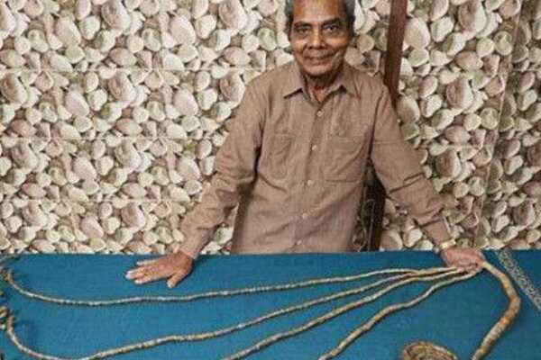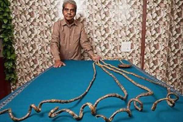 印度男子什里达尔·奇拉尔就拥有着世界最长指甲,他的左手留了长达62年的时间都没有剪过指甲,据说总长度已经达到了9.09米,其中最长的一只就是拇指上的指甲,超过了将近2米。但是在2016年之后因为受到吉尼斯世界纪录的认证,他也决定将指甲剪下捐给了博物馆。
