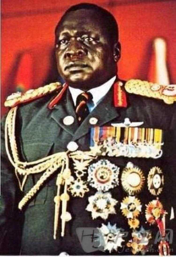 他效仿希特勒推行种族主义,先将国内8万多亚洲人驱逐出境,取缔解散一切有关亚洲的组织,理由是害怕国家亚洲化。后来以诛杀政敌和排除异己为由屠杀和迫害阿乔利族、兰吉族和其他部族30多万人,手上沾满了鲜血。