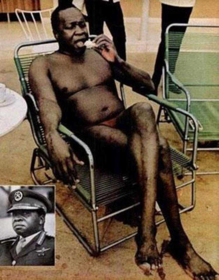 乌干达前总统伊迪阿明是出了名的暴君,他公开承认自己崇拜希特勒,在执政期间仿效希特勒进行大规模的种族清洗,造成30多万人死亡,因此被称为“乌干达屠夫”。由于阿明太过残忍暴虐,坊间还盛传他喜欢烹食人肉。
