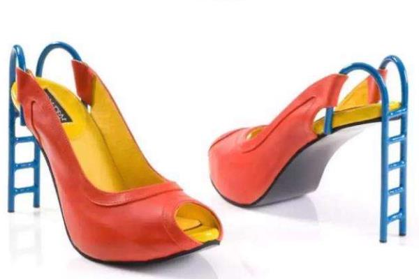 这双高跟鞋虽然看起来比较幼稚,但是设计师脑洞大开的将普通高跟鞋的跟替换成了梯子,看起来还是非常有童趣的,不过成年人传出去或许会有几分尴尬吧!