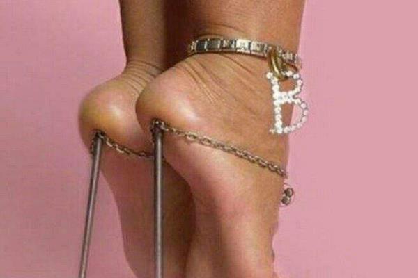 虽然被称为高跟鞋,但是这双鞋怎么看都像一个杂技表演道具,虽然脚链还是非常好看的,但是它既没有鞋垫、鞋底,也没有鞋帮,甚至都不能算作是一双鞋,果然艺术家的脑洞我们不懂,简直堪比史上十大最奇怪的鞋子。