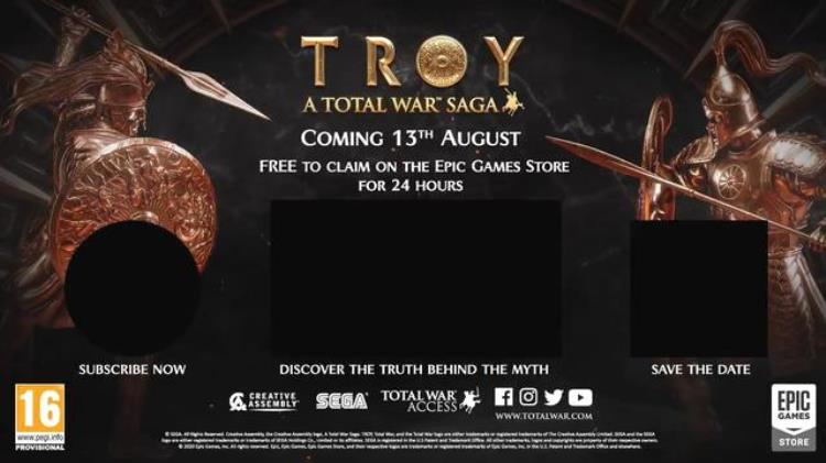 《全面战争传奇:特洛伊》将于2020年8月13日发售,Epic平台独占一年,且在发售的前24小时,所有玩家都可以免费领取这款游戏。