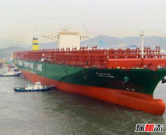 这艘巨轮的排水量达到18.7万吨之巨!相当于3艘6万吨级的航母。其全长400米,最宽之处60米。这艘巨轮可以搭载近2万个标准集装箱远洋航行,完全是一头海上的超级巨兽,十分威风。这艘巨轮下水后就引起了西方的广泛热议。此次航行是“中海环球”的首航,它从中国上海出发,前往欧洲四国。