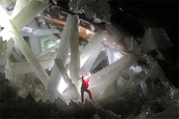 世界上最不可思议的洞穴是墨西哥的水晶洞穴。这是一家工业公司在挖掘地下隧道时发现的这个水晶洞穴,洞穴内到处都是晶莹剔透的发光巨型石柱,它们已经存在了几十万年了,而且一直在以一种非常缓慢的速度生长着。洞穴在地下300米的位置,和其他洞穴不同的是,水晶洞穴内的温度很高,这是因为洞穴下有熔岩岩浆。