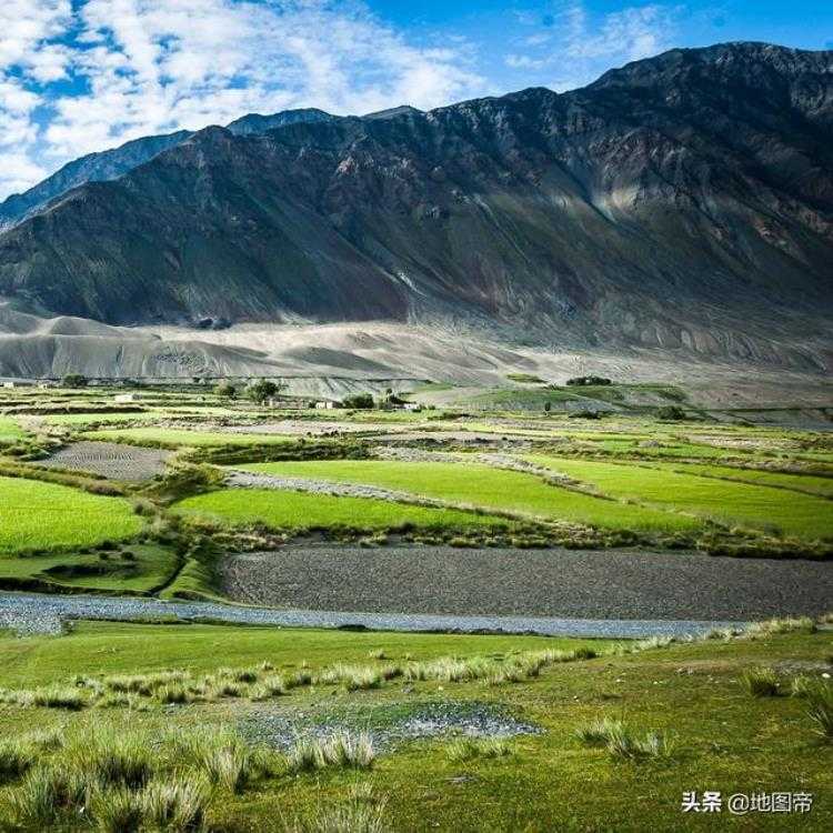 瓦罕走廊北边是帕米尔高原,南边是兴都库什山脉,两座山脉的冰川融雪形成河流,冲刷出来一条大峡谷。与帕米尔高原和兴都库什山脉相比,瓦罕走廊的海拔稍低,大概在3000米-4000米之间,而且河流两岸的河滩地势平坦,牧场不少,甚至有农业耕地。