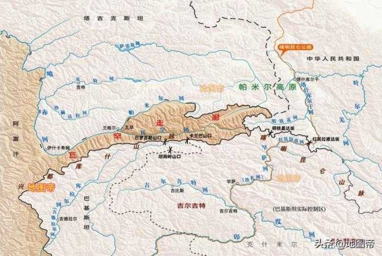 阿富汗这条胳膊,位于历史上著名的瓦罕走廊。如果没有瓦罕走廊,阿富汗和我们不会接壤,现在却硬生生地从两个“斯坦”之间伸出一只触手与中国为邻。站在塔吉克斯坦或巴基斯坦的角度来看,任何一方似乎都有望与对方接壤,但偏偏被瓦罕走廊横切一刀。那么这个“任性”的通道究竟是如何形成的呢?
