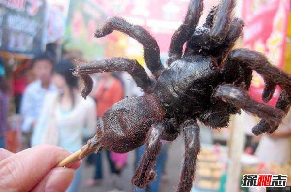 油炸蜘蛛是某些国家比较有名的小吃,据说含有大量的营养成分,吃起来有很多的蛋白质,甚至于适合减肥,而味道也还可以,不过相信很多中国人是不敢尝试的吧,毕竟在大家眼里蜘蛛压根没办法和食物挂钩。