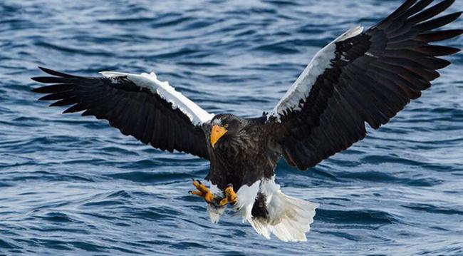 虎头海雕喜欢在空中缓慢地飞行,喜欢吃鱼同时也会捕捉其他的猎物,它有着锋利的爪子和强大的鸟喙可以轻轻松松将坚硬的外皮破开。不过这种鸟分布范围比较狭小目前并不多见了,是世界保护级动物。