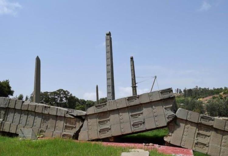 石碑代表阿克苏姆州一些著名人物的墓葬,其中最大的三座有精心雕刻的浮雕,模仿了阿克苏姆宫殿的门、窗和木梁。但不幸的是,西边最大的石碑由于不堪重负520多吨(相当于50多头大象)的重量而倒塌了。