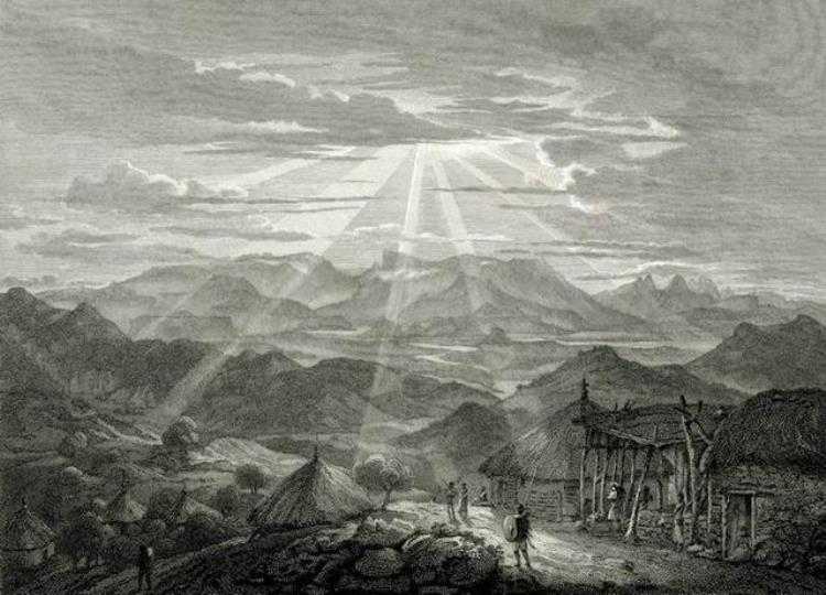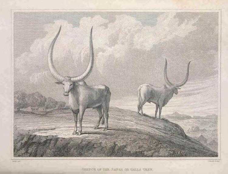 艺术家对桑加牛的描绘。 查尔斯·希思以绘画讲述亨利·萨尔特(Henry Salt,1780–1827年)到阿克苏姆的见闻,1814年