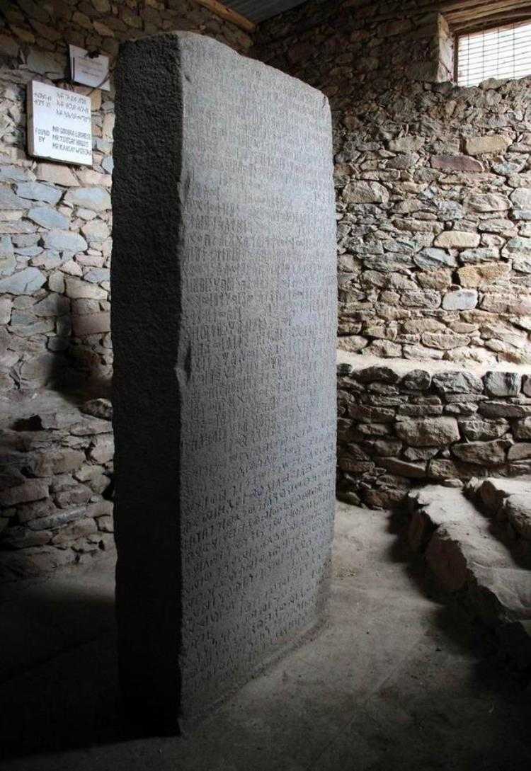 阿克苏姆宝座上的铭文,使用希腊语,盖兹文等书写,纪念埃塞俄比亚国王埃扎纳的事迹,约四世纪中叶。