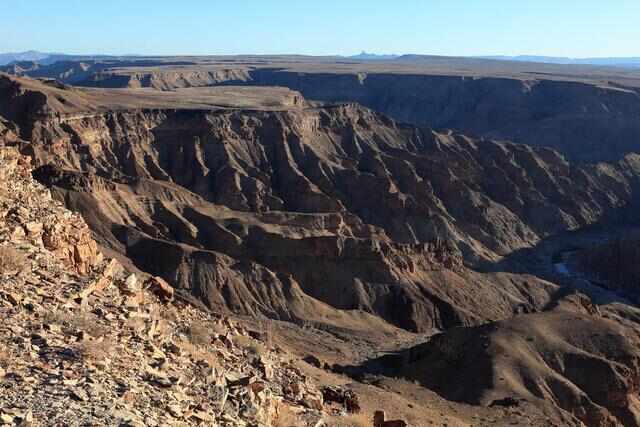 鱼河大峡谷位于艾艾斯/希特斯韦特跨国公园内,是世界上最大的峡谷之一,为非洲第一大峡谷。鱼河大峡谷长约 160 公里、宽27米、深550多米,是纳米比亚南部的主要旅游目的地之一。鱼河大峡谷徒步探险路线居于非洲南部徒步探险路线排名前列,背包客可以沿河道行走。道路两边由陡峭的崖壁包围,下面是深深的蜿蜒长河,整条路线从鱼河大峡谷的最北点一直通到艾艾斯温泉。许多游客选择徒步探险鱼河大峡谷,至少需要五天来完成徒步探险之旅。徒步探险鱼河大峡谷只能在冬季,每年的四月十五日到九月十五日为夏季,天气极其热。