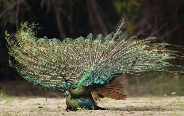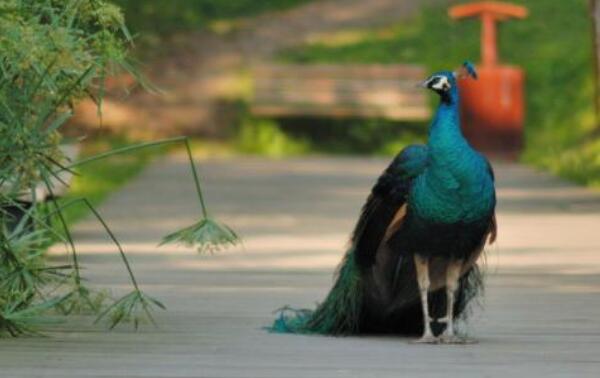 生活中,我们常说的孔雀其实指的是绿孔雀,其中只有雄孔雀会开屏,因为雌孔雀一般都其貌不扬的,没有那么华丽而修长的尾部羽毛。雄孔雀尾上覆羽特别发达,平时收拢在身后,伸展开来长约 1米左右, 就是所谓的孔雀开屏”。
