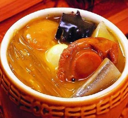 但制作一道普通的佛跳墙也很简单,比如海参、鲍鱼、大虾仁、干贝丁、鱼翅、鱼肚、鹌鹑蛋、一般清汤等均可制作。