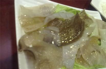 裙边:就是甲鱼的背甲边缘,肉质脆滑,胶原蛋白质含量高,营养丰富,也是采用水发的方法进行制作。