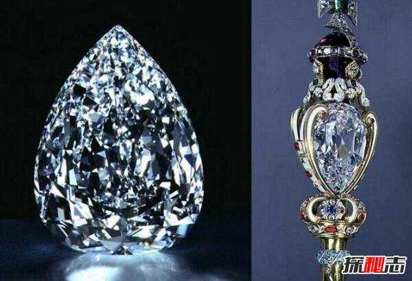 九大钻石中最大的一颗水滴形,共74个刻面,重530.2克拉,命名为“非洲之星Ⅰ号”。被镶嵌在象征至高无上皇权的权杖上。