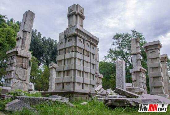 清代“康乾盛世”经过一个多世纪营造而成的圆明、长春、绮春三园(统称圆明园),总占地面积350余公顷,建造有成百处山水环抱、意趣各异的园林风景群,殿阁亭榭等各式园林建筑达20万平方米,被国人誉为中华第一园,西洋人则称之为“万园之园”。它从1860年(咸丰十年)被英法联军纵火焚毁,到最终沦为一片废墟经历了一个世纪的漫长过程,大体可以分为四个历史阶段,就叫做火劫、木劫、石劫和土劫。