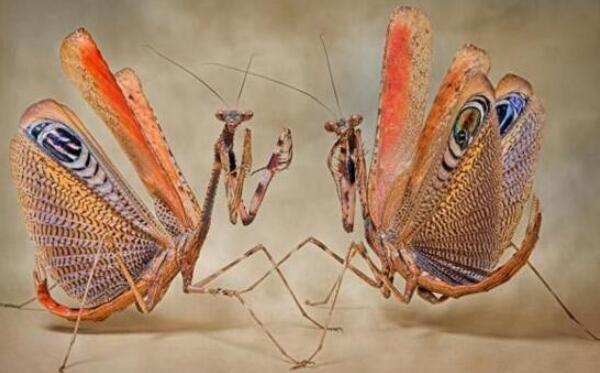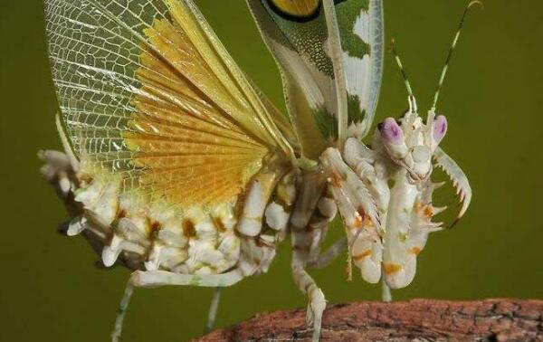 蝗螂之王:魔花蝗螂身长可达13厘米,是捕食蝗螂中最大的一种,被誉为“蝗螂之王”!魔花蝗螂体型修长,前胸可自由转动,捕食能力极强,当苍蝇、飞蛾、蝴蝶和甲虫靠近自己时,它们就挥动有力的前肢,牢牢抓住猎物,再用锋利口器将其杀死。