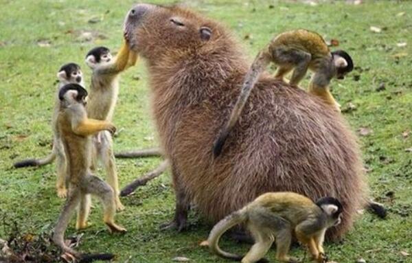 小结:水豚外形和豚鼠很相似,但它体长1.3米,却比豚鼠大100倍,是世界上最大的啮齿动物。虽然水豚长的可爱,可以当宠物养,当它的命运其实跟中国的猪一样,养肥了就开宰。对啮齿动物感兴趣的朋友,还可以看看世界上最凶猛的啮齿类动物。