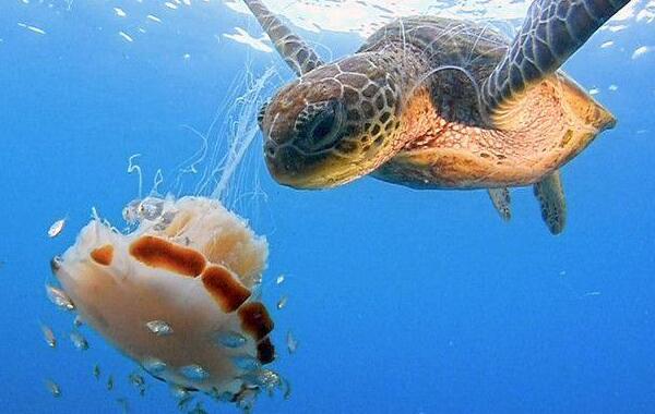 作为世界上最大的触手怪,而且是有毒触手怪,在大西洋中,北极霞水母是很强大的,所以很多人会认为它吃鲨鱼!这虽然有点夸张,但也证实了北极霞水母的强大,不过再强大的生物,也有天敌,北极霞水母也不例外,它的天敌是棱皮龟。