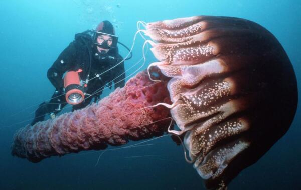对于北极霞水母,大家肯定听过,因为它是世界上最大的水母,其伞状体能达到惊人的5米,人在它面前会感到渺小!而随着对北极霞水母的不断了解,我们会发现它还是世界上最大的触手怪,它有150余根触手,每根触手40余米,简直是触手王!