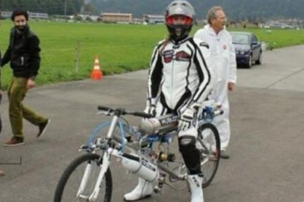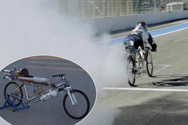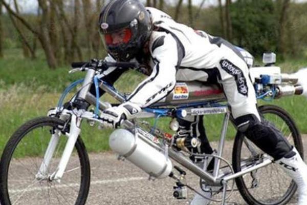 一般人们需要经过一公里内的路程才会选择轻便的自行车,因为它的速度并不快,基本上是不可能跑赢汽车的,但是事事并没有绝对,因为曾经有人将火箭和自行车结合开发出了一款速度赶超法拉利跑车的自行车,下面就跟着一起来看看世界上速度最快的火箭自行车到底有多快吧!