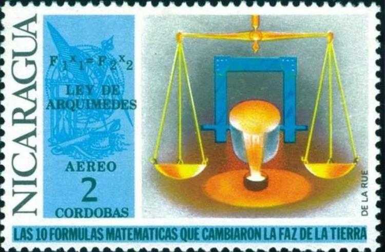 尼加拉瓜邮票上的阿基米德和杠杆原理。