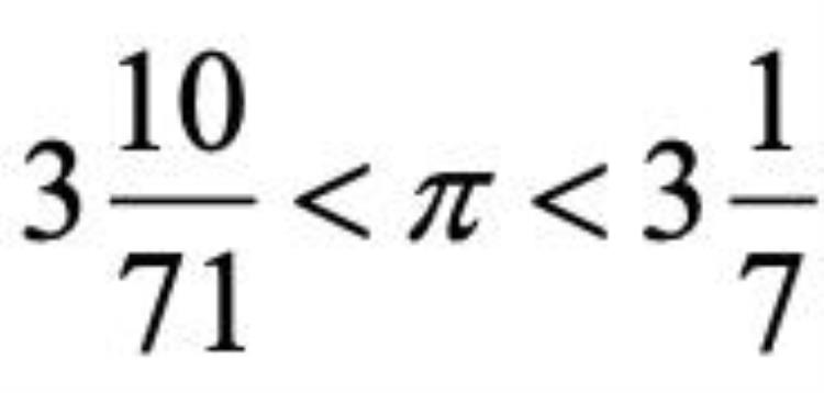 阿基米德用他的穷竭法,分别计算出了内接和外切正96边形的周长。这也是科学史上首次用上、下界来确定一个量的近似值,同时提供了误差估计。值得一提的是,不等式左右两端都是连分数的渐近形式,换句话说,在不超过7或71的所有分数中,它们是最接近于圆周率值的。阿基米德得到的圆周率是3.14,精确到小数点后两位,这是公元前人类所得到了最精确的结果。在此之前,最好的结果是古埃及人的3.1,而古巴比伦人和后来的《九章算术》给出的结果都是3.0。