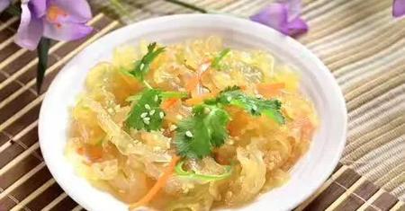 海蜇作为我们常见的一道菜,它含有属于海产品中的优质蛋白质,此外海蜇中还含有烟酸成分。并且海蜇中的维生素B含量非常丰富,同时含有优质的纤维素成分,起到促进肠道蠕动的很好的作用,能够治疗便秘而且对于咳嗽痰多等肺部问题也有很大的帮助。
