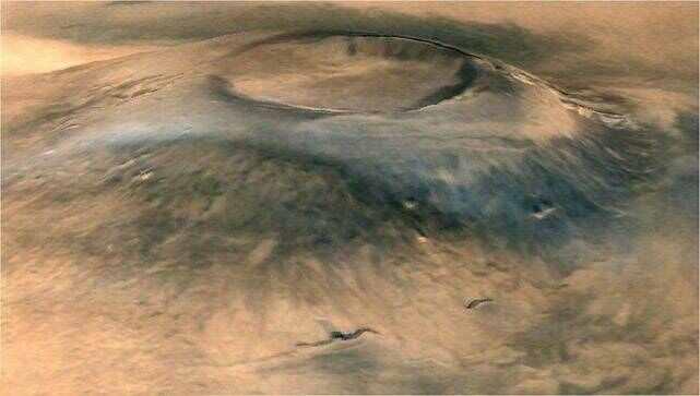 奥林匹斯火山的斜坡很平缓,形状像一个巨大的盾牌。火山底部直径600公里。海底覆盖的面积比英国的陆地面积还要大。它有27多公里高,最高部分21.9公里,是地球上珠穆朗玛峰第四峰高度的三倍。陨石坑直径80公里,深度约3公里。这对两个伦敦人来说足够了。相比之下,地球上最大的火山是夏威夷岛上的莫纳罗亚火山,它的底部直径约200公里,海拔4170米,位于海底约9300米,这意味着整个夏威夷岛都可以塞进奥林匹斯火山。