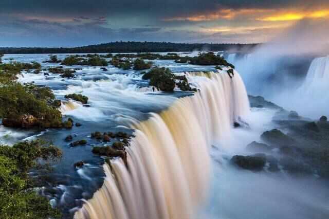 伊瓜苏大瀑布,是世界上最宽的瀑布,位于阿根廷与巴西边界上伊瓜苏河与巴拉那河合流点上游23千米处,被誉为“南美第一奇观”,是南美洲最大的瀑布,也是世界五大名瀑之一。该瀑布为马蹄形瀑布,高82米,宽4千米,平均落差75米。1984年,被联合国教科文组织列为世界自然遗产。