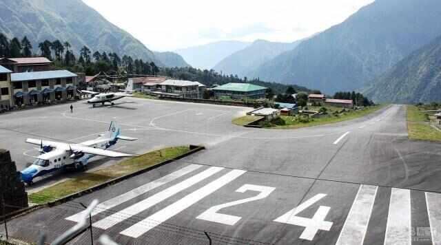 卢卡拉机场坐落在尼泊尔高耸的喜马拉雅山脉腹地,是世界上位置最高的机场之一,而且跑道非常短,一端是悬崖,而另一端则是可以通网佛电的石墙,这个跑道长度只有527米的机场却是这个国家最繁忙的机场。