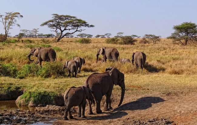 坦桑尼亚的塞伦盖蒂国家公园因每年迁徙150多万只白胡子角马和25万只斑马以及大量的尼罗河鳄鱼而闻名,该公园建于1951年,每年接待35万游客。