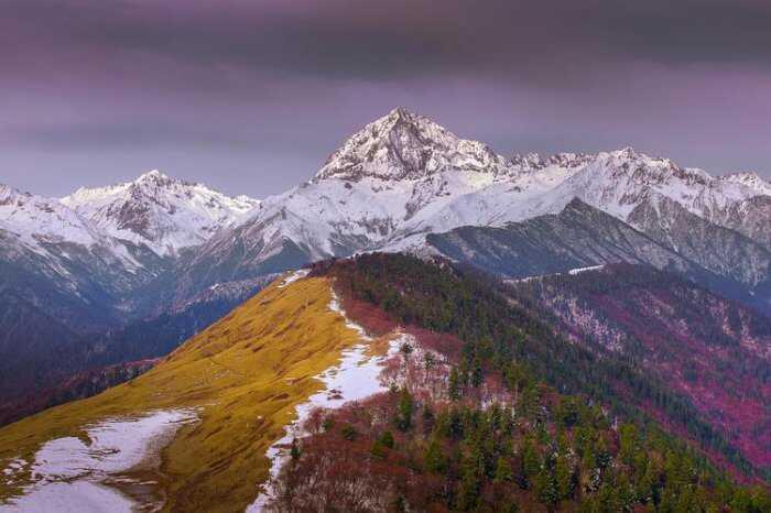 这座被评为世界佛教二十四神山之一的三神山,位于甘孜稻城亚丁境内,其主要由仙乃日、央迈勇、夏诺多吉三座三峰构成,在其周边也涵盖于30多座壮观的大小山峰,最高可达6032米的海拔,该地不仅风景优美,同时也是欣赏冰川,草地,森林以及海子等自然景观的理想胜地。