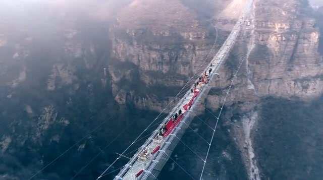 这座桥采用悬索结构,桥面所使用的材料是航空夹胶玻璃,将近4厘米的厚度让这座桥拥有超强的承受能力,可同时允许600人过桥,而且,恐怕十二级强风或者六级地震也无法将其撼动,坚实程度不言而喻,走至桥中间,桥面还会随着人的节奏摇晃起来,这座豪华版的“网红摇桥”小伙伴们敢不敢尝试一下呢?