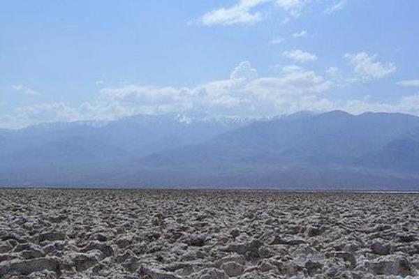 魔鬼高尔夫球场盐湖曾经是一个蒸发了的湖,湖上的矿物质还留在水面上,根据研究,盐层超过了300米,在一些地方它可以达到2700米,位于世界著名的加州死亡谷国家公园内。