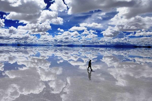 乌尤尼盐沼是世界上最大的盐沼,有“天空之镜”的美称,乌尤尼盐沼是在安第斯山脉隆起过程中所形成的,位于海拔约3700公尺的山区,每年都吸引了不少的人前去,被誉为地球上最接近天堂的地方,周边的盐场通过公路相连,形成了一幅独特的景观。