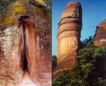 阴元石是在与阳元石隔山隔江不到5公里的翔龙湖畔,这个奇景被称为“神州第一绝景”、“天下第一女阴”!阴元石是隐藏于深山幽谷之中。她就像是将女子的性器官放大了100多倍一样,它高10.3米,宽4.8米,不仅比例和形状非常形象,它的魅力更在于粉红的颜色。