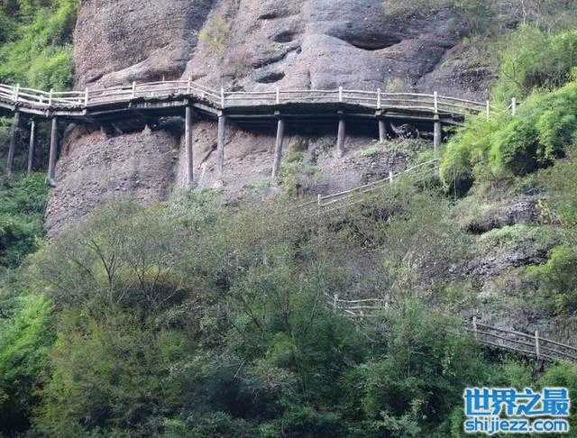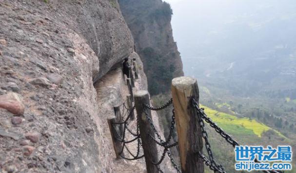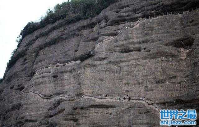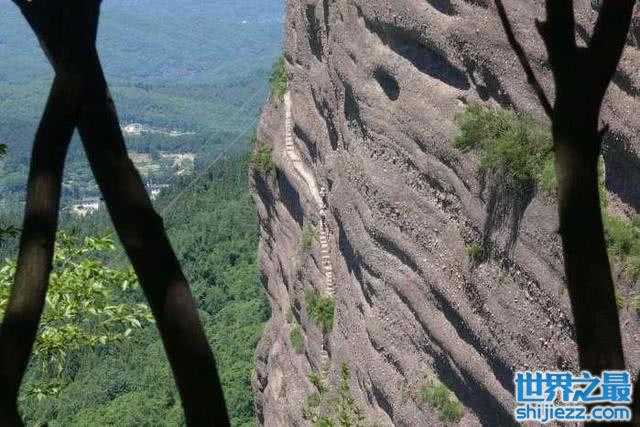 猿猱鸟道在绝壁之上,以“之”字形蜿蜒而上。攀援前,向导一再告知,千万不可向下望。很多人向下望了一眼,腿肚子打颤,就死活走不动了。