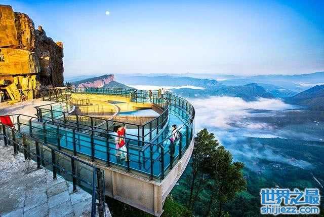 剑门关景区大剑山主峰上建有世界第二、亚洲第一的悬空玻璃观景台,游客可立在观景平台,高空俯瞰整个剑门关。剑门关悬空玻璃景观平台悬挑长度,仅次于美国科罗拉多大峡谷国家公园悬空玻璃观景廊桥。桥头配置高大乔木与园林景观,景观玻璃平台与古树,古木石雕等相呼应,游客行走其上,就可体验桥的悬空与隐秘视觉感受及游离空间的时空错觉。