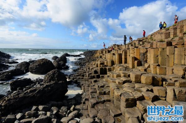 巨人之路是是北爱尔兰著名旅游景点,位于北爱尔兰大西洋海岸处,这个堤道是由数万根大小不均匀的玄武岩石柱共同聚集而成,绵延几公里,气势磅礴,蔚为壮观。根据相关研究,此处是由活火山不断喷发而成,具有气势磅礴特点,呈现出高低参差的石柱林地貌。