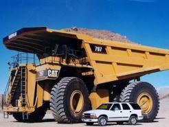 卡特彼勒797是全球最大矿山车之一,它是由美国卡特彼勒制造的,作为一辆巨型卡车,它搭载了一个V24发动机,超大的功率,让它可以用有3400马力的动力,排量也达到了惊人的117.122公升,号称是世界上排量最大的车这让世界许多顶级跑车都难以望其项背。