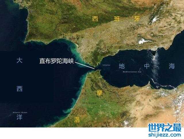 直布罗陀海峡,位于西班牙最南部和非洲西北部之间,是连接地中海和大西洋的重要门户;最窄处在西班牙马罗基角和摩洛哥西雷斯角之间,宽仅14千米。其西面入峡处最宽,达43千米;最浅处水深301米,最深处水深1181米,平均深度约375米。早年它就被大西洋航海家们所利用,地中海沿岸国家的探险船队曾频繁地通过这里而到达大西洋。今日的直布罗陀海峡仍是大西洋通往南欧、北非和西亚的重要航道。