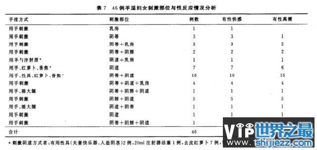曾有研究对46例自慰女性刺激部位及性反应情况做了调查,结果如下。