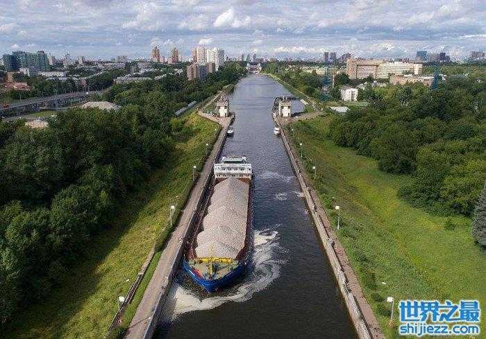 莫斯科运河是一个巨大而复杂的水利枢纽工程,全长128公里,真个河段修建了8座船闸和8座水电站,人工建筑设施达二百多个。