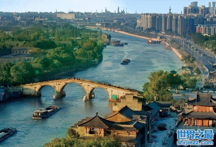 京杭大运河是世界上里程最长、工程最大的古运河,也是最古老的运河之一,全长1794公里,北起北京,南至杭州,途径四省一市,沟通五大水系,历史也极其悠久,开凿至今已有2500年,是中国古代劳动人民创造的伟大项目,是中国文化地位的象征之一。