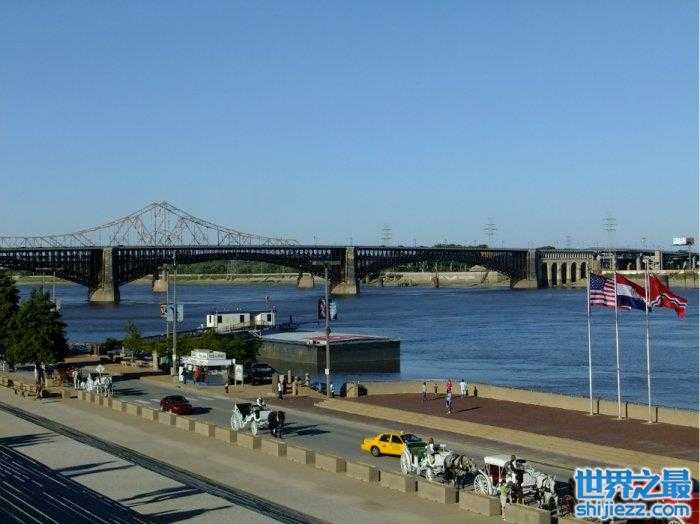 密西西比河是美国最大的河流,是世界第四长河,全长6262千米。若以发源于美国北部的艾塔斯卡湖的上密西西比河为河源,全长3767km;若以密苏里河的源头雷德罗克湖计算,全长6262千米。是北美洲流程最长、流域面积最广、水量最大的河流,位于北美洲中南部。河流年均输沙量4.95亿吨。流域属世界三大黑土区之一。通常以发源于美国西部落基山脉的密苏里河支流红石溪(RedRock)(位于蒙大拿州)为河源,则全长为6021km,居世界河流的第4位。